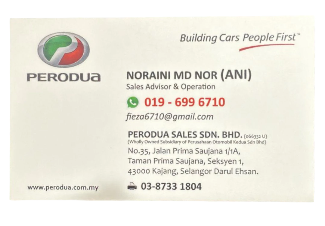 Hubungi saya sekarang untuk tempah kereta Perodua idaman anda. Saya sedia membantu anda merialisasikan impian anda untuk memiliki kereta Perodua.