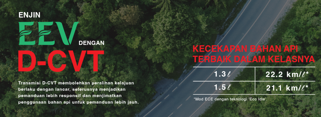 The D-CVT transmission enables smooth gear shifts, making your drive more responsive while improving fuel efficiency — allowing you to go further with every journey.